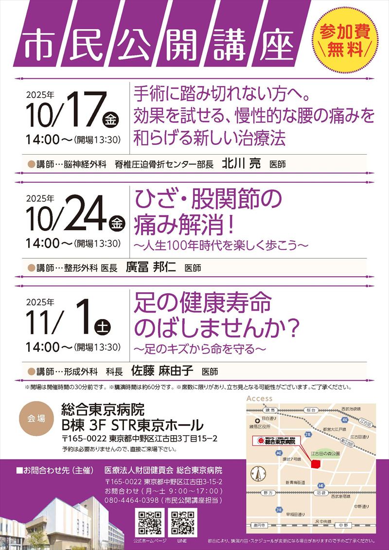 10月・11月 市民公開講座のご案内(総合東京病院STR東京ホール 実施分)
