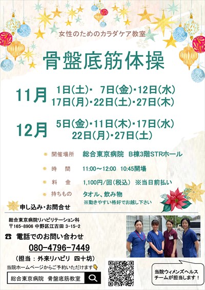 骨盤底筋体操(女性のためのからだケア教室)11・12月のお知らせ
