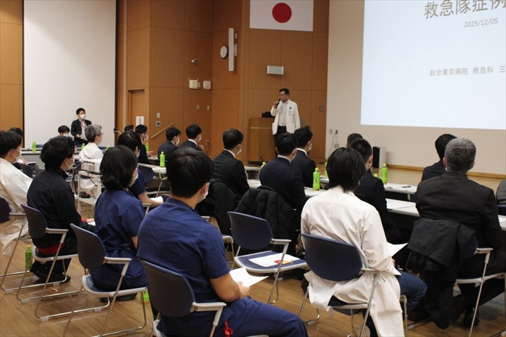 勉強会では、実際に搬送された患者さんの予後、各診療科医師から救急時の搬送アドバイスなどがレクチャーされ、最後に意見交換を行いました。