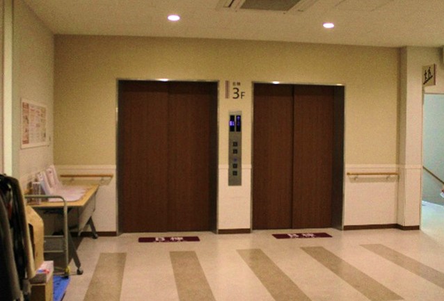 ④売店を曲がるとすぐにB棟エレベーターがありますので各階にお進みください |